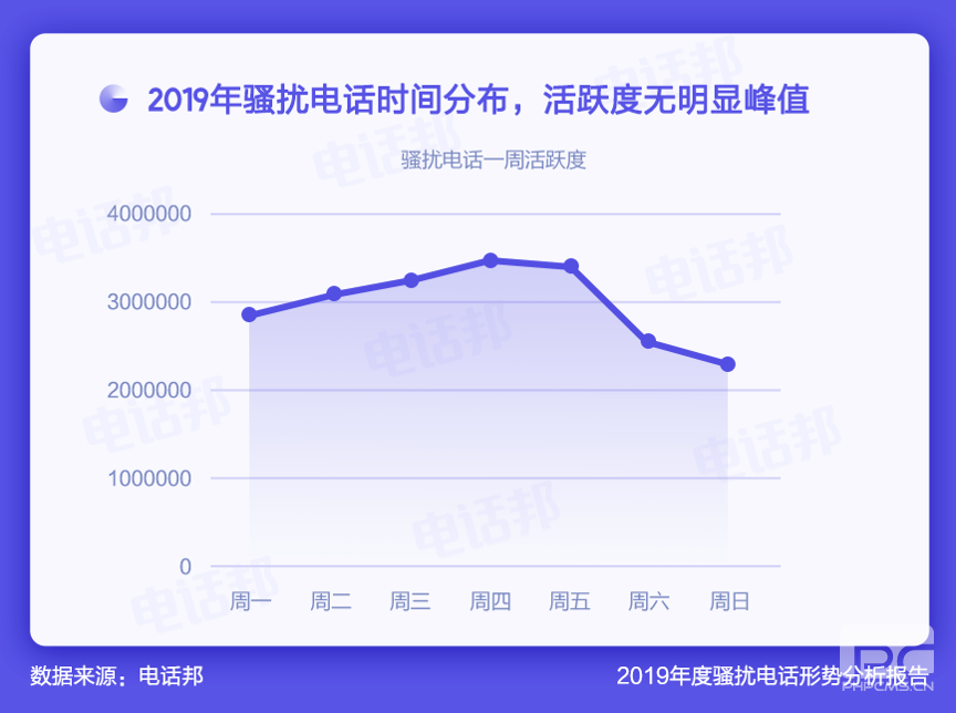 报告基于电话邦覆盖的10亿+移动终端,并通过自主研发的智能分析算法和数据模型,针对全年的骚扰电话进行统计和分析,以便达到快速响应、快速治理的目的。